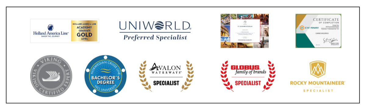 Hi, I’m Carrie. I design travel that’s safe, stress‑free, and soul‑stirring—so you can focus on the joy of the journey. My specialties are solo female travel, cruises (river & ocean), guided tours, and Canadian travel. Certified companies like with Holland America Line, Viking, Norwegian, , Trafalgar, Insight Vacations, Costsaver, Globus, and Cosmos, I match you with the right product, pace, and price point for how you love to explore.